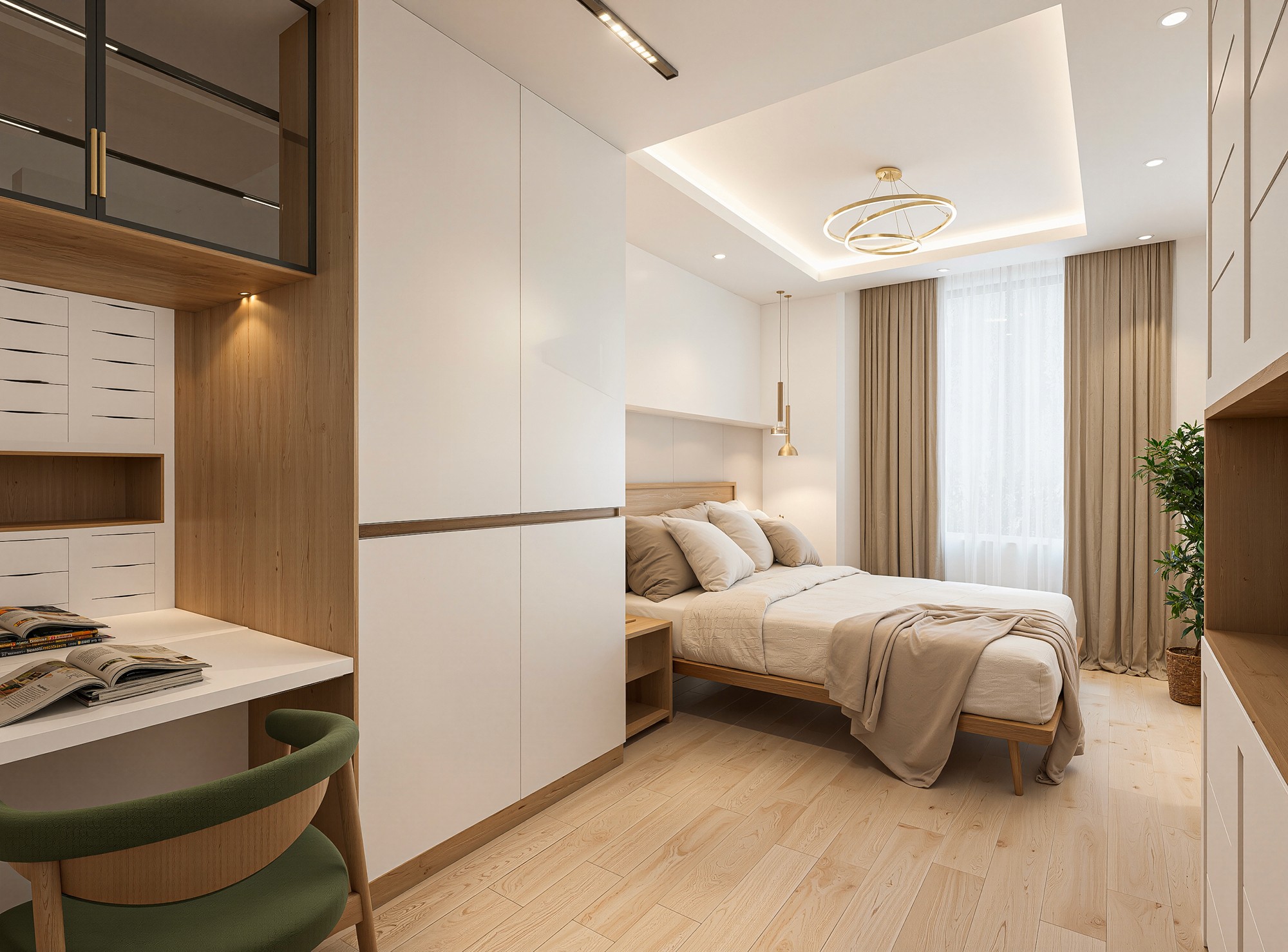 A simple and modern apartment interior design inspired by japandi Interiors. Using natural materials and warm tones to creat warmth and comfort within the interior space.